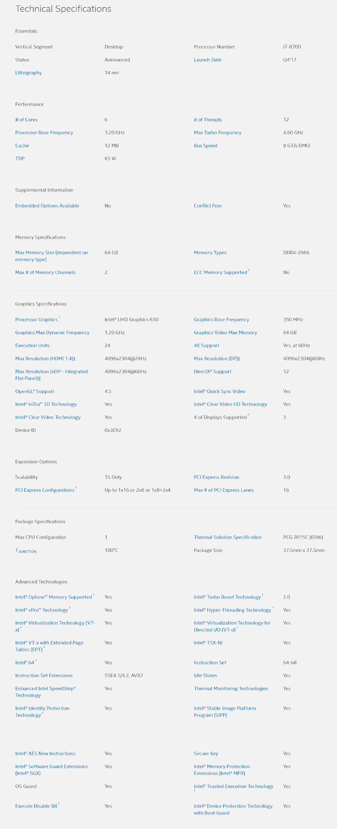 Intel i7 8700 8th CPU